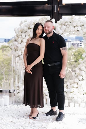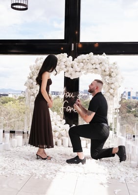 A breathtaking rooftop proposal at Canberra’s Rez Hotel, where Adnan booked out the entire bar for this special moment. The elegant all-white setup, featuring a heart-shaped design and white roses, created a romantic and unforgettable atmosphere. A beautifully planned celebration of love in the heart of the capital.