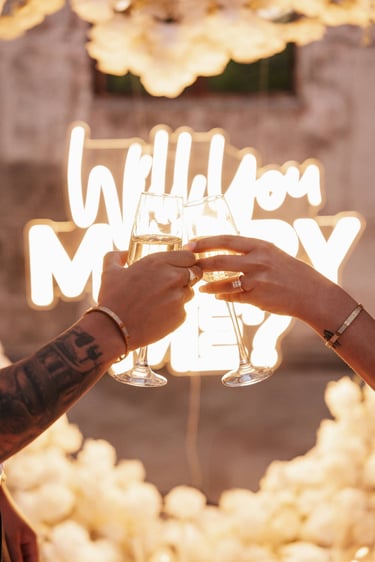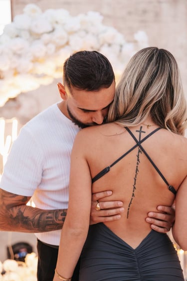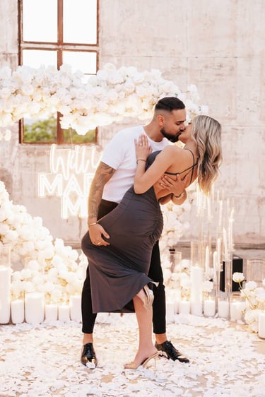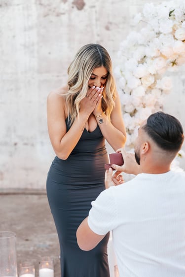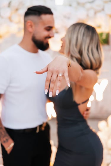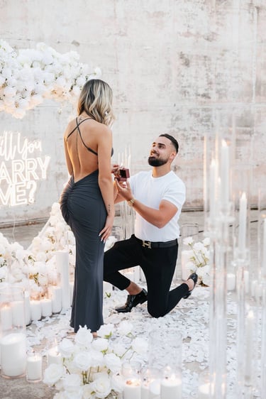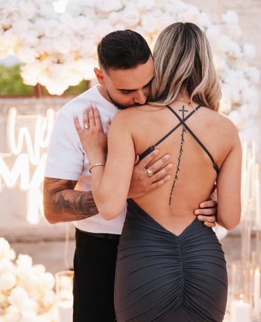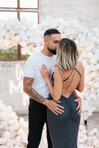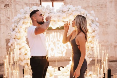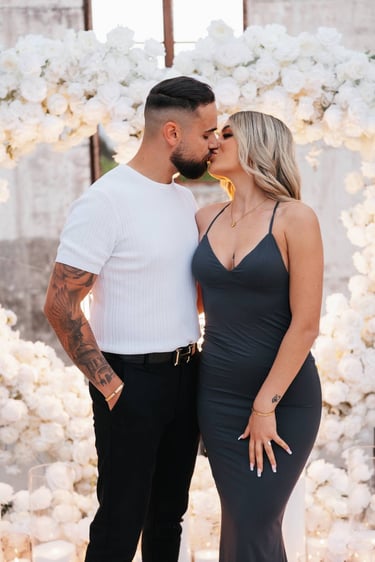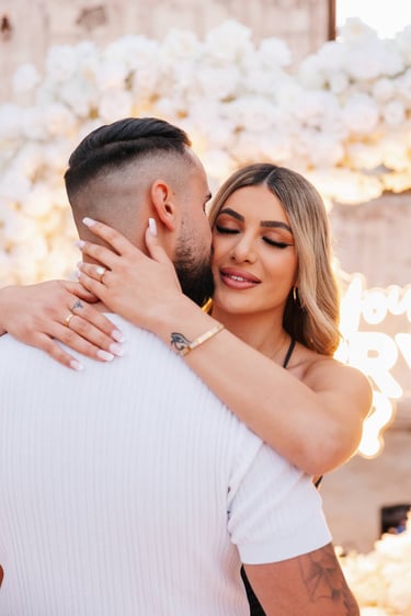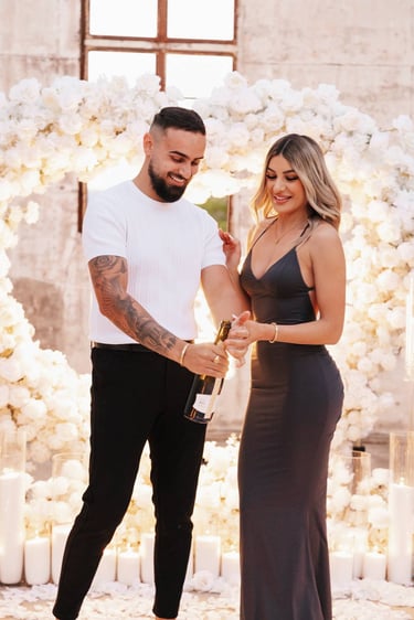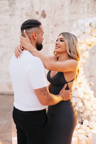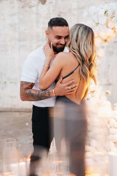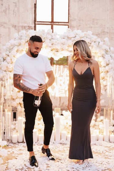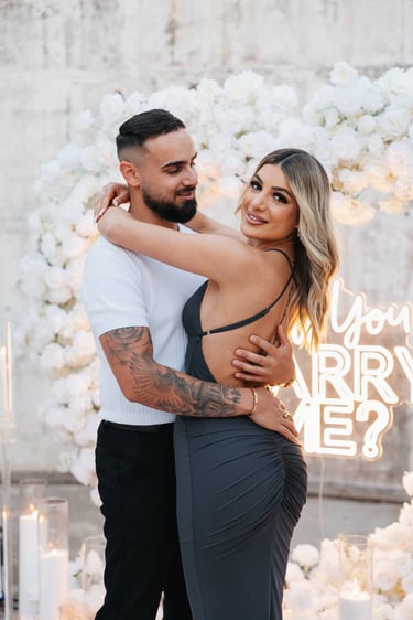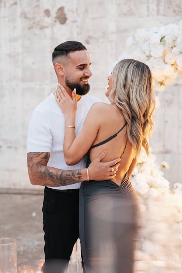 A stunning proposal in Australia’s capital—Canberra. Set against the scenic backdrop of the Hill Observatory, Danya’s modern and elegant setup featured a large white love heart, perfectly complementing the breathtaking city views. A beautifully planned moment, celebrating their love in a truly unforgettable way.