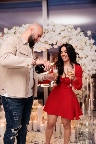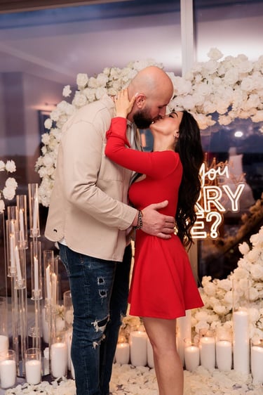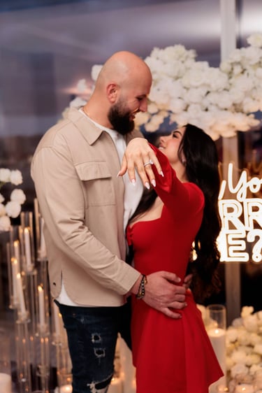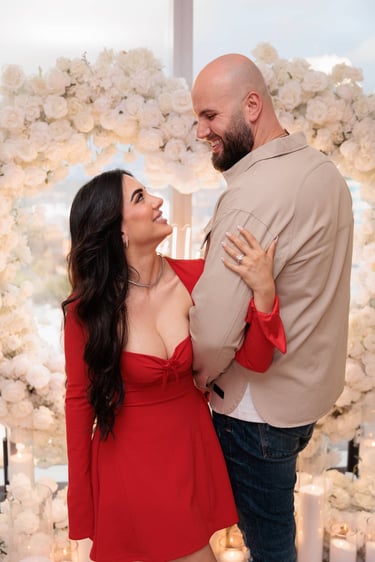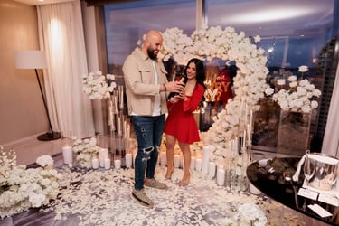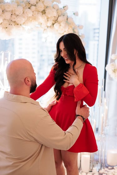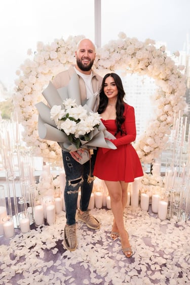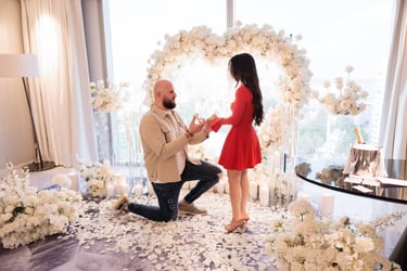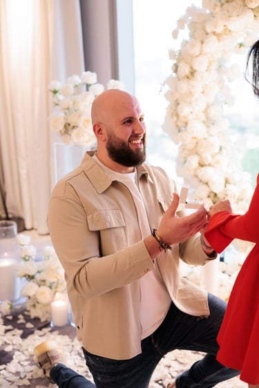A heartfelt moment at Crown Towers Sydney—George’s beautifully planned proposal in a luxurious hotel room was filled with emotion. Surrounded by romantic details, Youna’s tears of joy and their shared embrace captured the depth of their love. A truly beautiful celebration of their journey together.