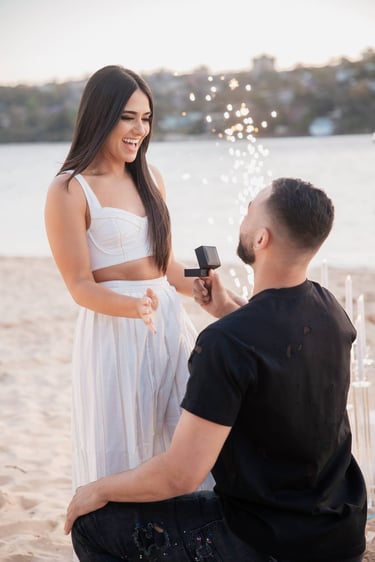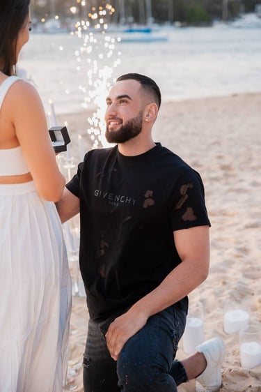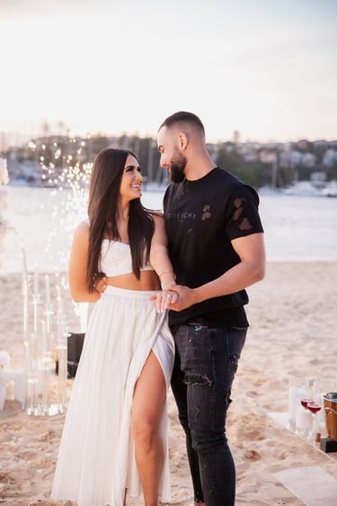 A breathtaking Northern Beaches proposal at sunset, creating the perfect setting for Tarkan and Bahar’s special moment. Surrounded by family and the warm glow of sparklers, their love shone brightly against the evening sky. A beautiful and unforgettable celebration of their journey together.
